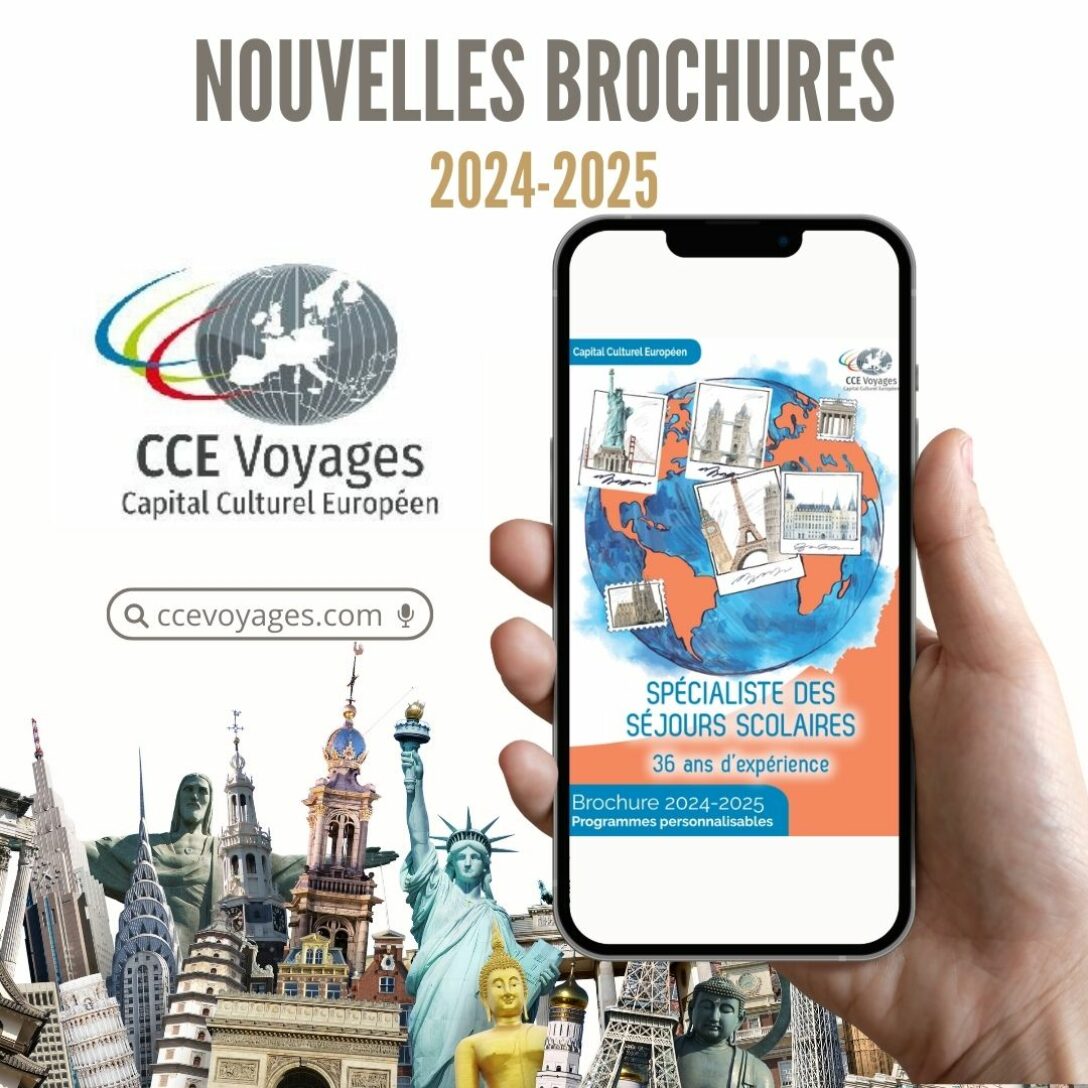 L’équipe de CCE Voyages est ravie de vous présenter sa nouvelle brochure pour l’année 2024-2025. L’équipe a travaillé dur pour vous proposer de nouveaux séjours scolaires, de nouvelles prestations pour vos élèves, et pour trouver de nouveaux centres de familles d’accueil afin d’élargir notre offre. Nous sommes impatients d’échanger par téléphone avec vous, ou bien par email, mais aussi en direct dans nos locaux de Mâcon, afin d’élaborer un ou plusieurs projet avec vous.